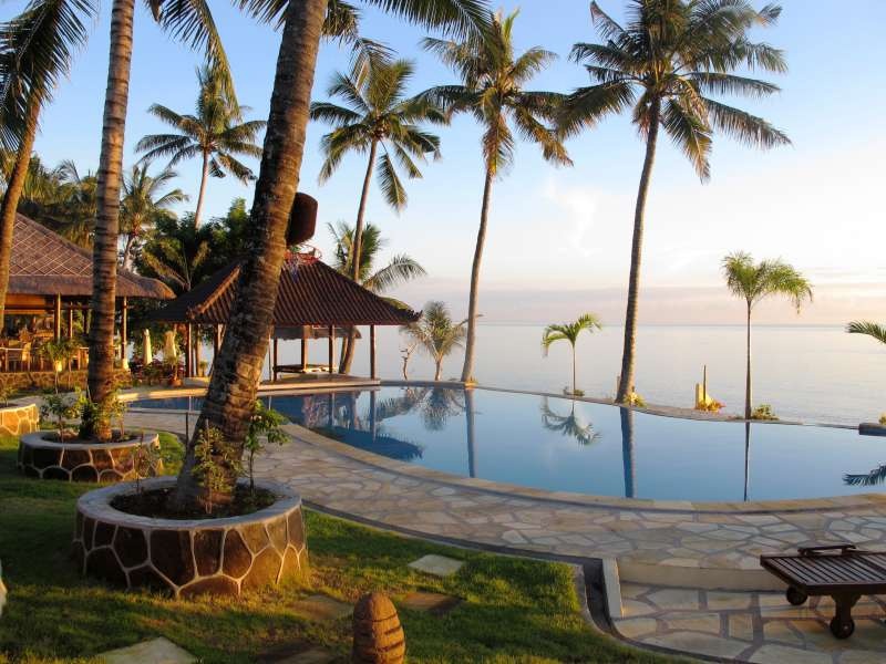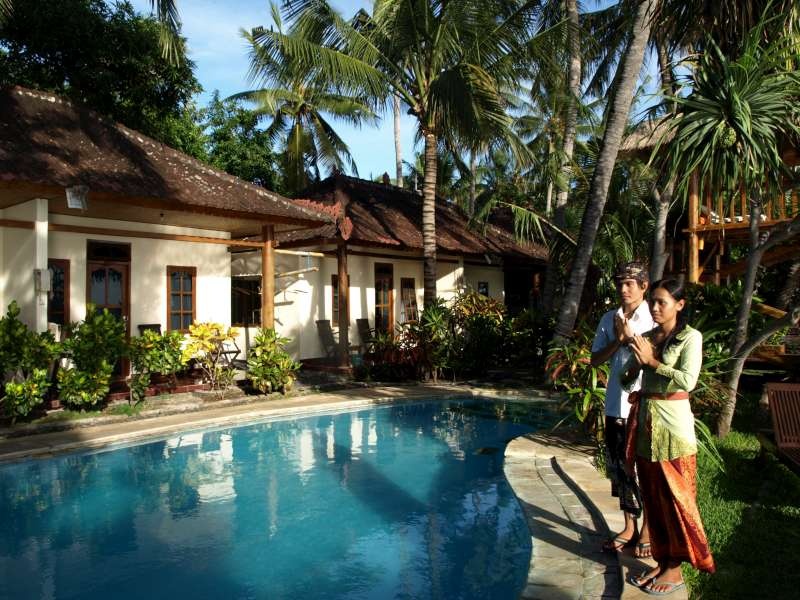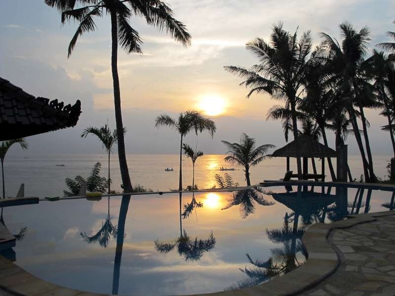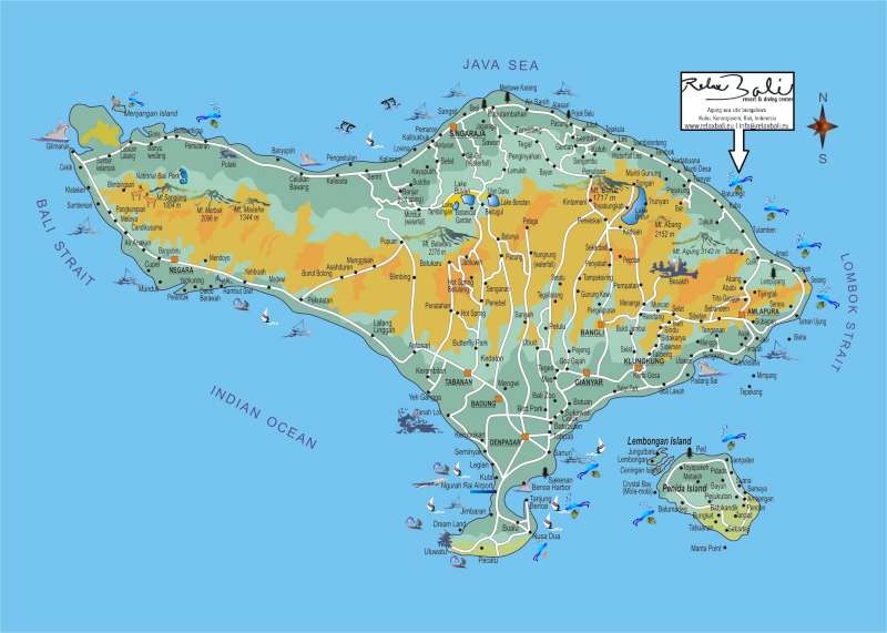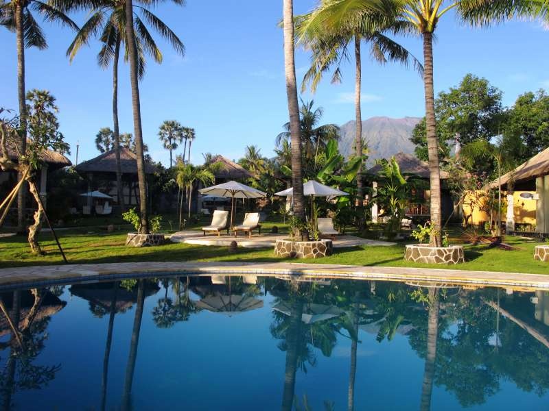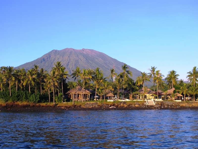 Das Relax Bali Ressort (Monkey Bungalows) liegt im Nordosten Balis am Rande der Stadt Kubu, etwa 4 Kilometer von Tulamben entfernt. Das Ressort liegt in einem tropischen Garten im Schatten von Kokospalmen und exotischen Pflanzen direkt am Meer. Im Hintergrund erhebt sich der 3031 Meter hohe Vulkan Gunung Agung.
