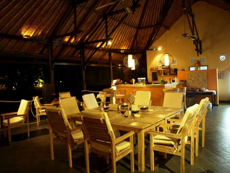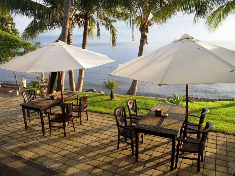 Das neue Restaurant wurde im Jahr 2010 in traditioneller offener Bauweise direkt am Meer errichtet. Hier kümmert sich der Koch Roman mit seinen 6 Kollegen um Ihre kulinarische Zufriedenheit. Das Angebot reicht von lokalen balinesischen Spezialitäten bis hin zu kontinentalen Speisen mit verschiedenen Salaten, Eis, Espresso und auch Fassbier! Den Gästen steht ausserdem ein Grill zur Verfügung, auf dem Sie auch Ihren selbst geangelten Fisch zubereiten dürfen!