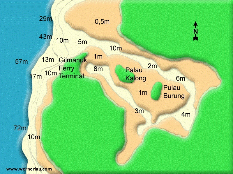 In den letzten Jahren wurde dieses Riff wegen der seltenen Artenvielfalt von Kleingetier zu einer Art Legende unter den Tauchern. Ein Tauchgang speziell für Makro-Fans. Diese von Mangroven umsäumte Bucht ist 50 Minuten von Pemuteran entfernt und bietet viele seltene und wunderschöne kleine Dinge. Es gibt hier nicht viele Korallen, kälteres Wasser und eine maximale Wassertiefe von 12 m. Zu finden sind hier in erster Linie Seepferdchen, eine Vielzahl von Geisterpfeifenfetzenfischen, Drachenfischen, Nacktschnecken in Mengen, Fangschreckenkrebse und vieles, vieles mehr. Auch Seeschlangen wurden hier gesichtet. Der Tauchplatz ist ein absolutes Muss für Fotografen!