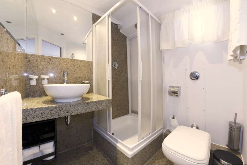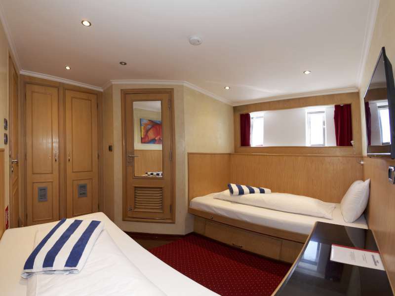 - Unterbringung in einer halben Doppelkabine Unterdeck mit Dusche und WC